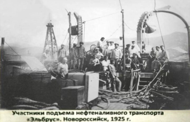 В июне 1918 года на внешнем рейде Цемесской бухты были затоплены своими командами корабли Черноморского флота и военных транспортов, в их числе и танкер «Эльбрус». В марте 1920 года в Новороссийск вступила Красная армия, белогвардейцы эвакуировались. Встал вопрос о подъеме затопленных судов.