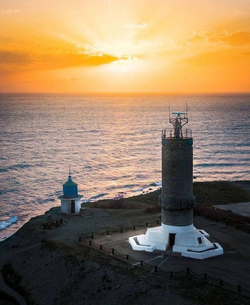 Два маяка: слева маяк-часовня, справа памятник-маяк. Фото eyemaxi