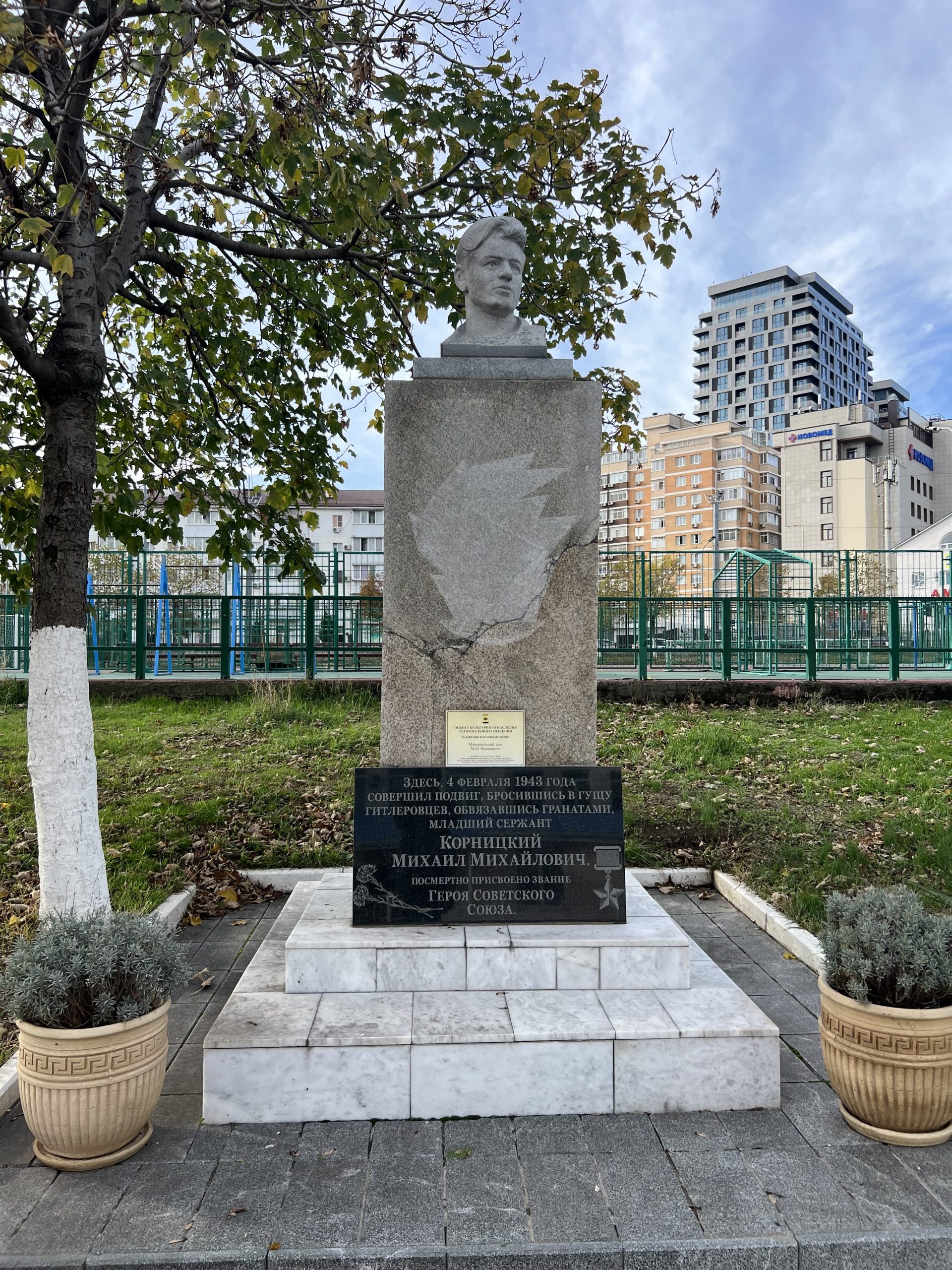 Бюст Корницкого во дворе школы 22
